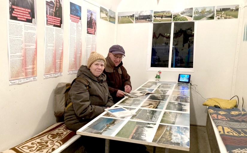 Hier ein Blick in die Bauwagenausstellung mit Besucher*innen.
